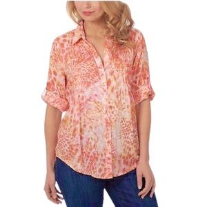 NWT Gloria Vanderbilt Women's Giselle Button Down Roll Tab Sleeve Multicolor