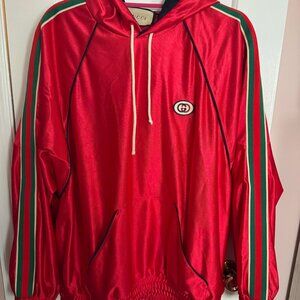NWT Gucci Shiny Jersey Hooded Web Stripe Sweatshirt - Red