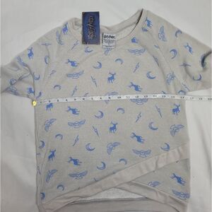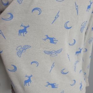 Harry Potter long sleeve crew neck print envelope top. Great gift idea! Super soft material. Owls, lightning bolts, moons and deer print. Loose fitting. Rayon polyester.