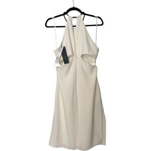 NWT Halston Heritage White Draped Halter Cocktail Dress with Cutouts (6)