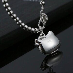 NWT Hello Kitty Locket Charm Bracelet S925 Sterling Silver Beaded Chain 7.5"