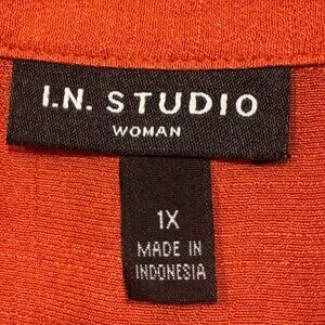 NWT I.N. Studio Women's Button Front Shirt Rust Red Roll Tab Sleeve Plus Size 1X