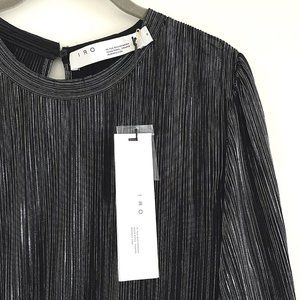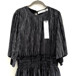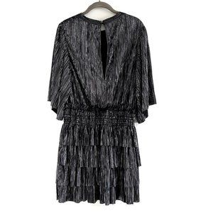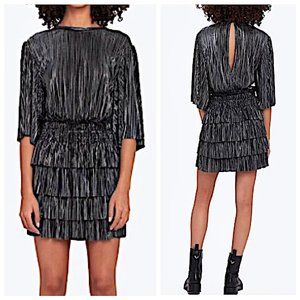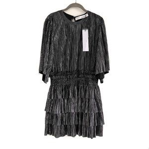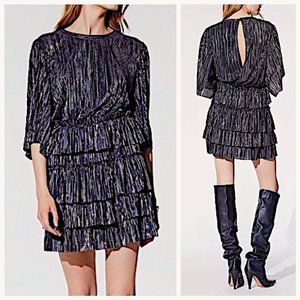 NWT IRO Paris Cuzco Tiered Metallic Plissé-Satin Mini Dress in Black/ Si…