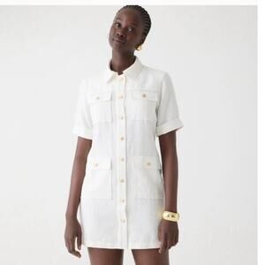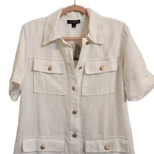 NWT J. Crew Gamine Shirtdress In White Linen Gold Button Detail 2