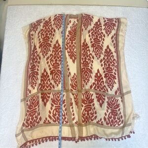 NWT Janice Apparel Red Rust Cream Boho Hippie Patterned Summer Cover up Kimono