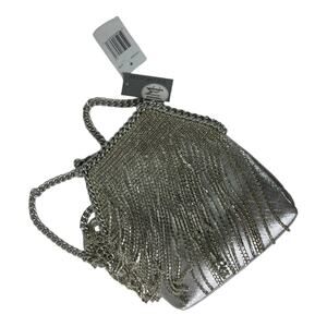 NWT Jessica McClintock Chrissy Silver Curtain Rhinestone Fringe Clutch
