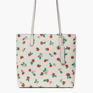 NWT Kate Spade Jana Tossed Strawberry Printed Tote/White/ Saffiano