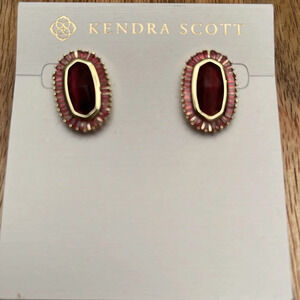 NWT Kendra Scott Baguette Elle 14k Gold Plate Stud Earrings Red