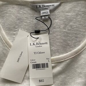 NWT L.K.Bennett London TJ Chloee top short sleeve cream Large 100% Linen