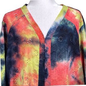 LOGO by Lori Goldstein Beach to Street Tie Dye Eyelet Lace Duster