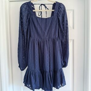 NWT LULUS Only You and I Navy Blue Long Sleeve Tie-Back Mini Skater Dress Medium