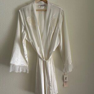 NWT Linea Donatella Short Robe Ivory Beaded Lace Satin Lingerie Bridal L/XL