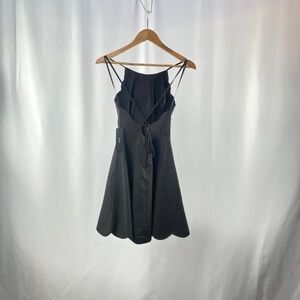 The little black dress is every stylish girl's must-have, and the Lulus Play On Curves Black Backless Dress is one you'll cherish forever! Skinny straps support a high rounded neckline as they crisscross and tie over an alluring open back with scalloped trim. The lightweight, woven bodice has princess seams that travel to a fitted waist, above the flaring skirt (with more scalloped detail!). Hidden back zipper with clasp.