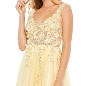 NWT MAC DUGGAL EMBELLISHED ILLUSION BUSTIER A LINE TULLE GOWN YELLOW 12 11201