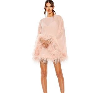 NWT MAC DUGGAL TRAPEZE DRESS WITH FEATHER TRIM 11622 $ 598.00