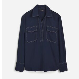 NWT! MADEWELL Navy Contrast-Stitch Popover Shirt Size XS