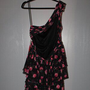 NWT Mac Duggal 70246 One Shoulder Ruffled Rose Floral High Low Gown Black