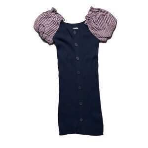 NWT Maeve Anthropologie Plaid Puff Sleeve Mini Rib Button Sweater Dress SMALL