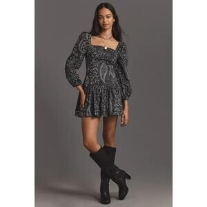 NWT Maeve Long-Sleeve Square-Neck Drop-Waist Mini Dress Size XL #8H502
