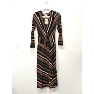 NWT Maeve by Anthropologie Striped Wrap Midi Dress Brown Multi Women's Size XS