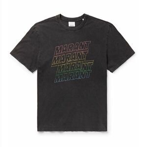 NWT Marant Etoile Logo-Print Cotton-Jersey T-Shirt - Gray Large $ 220.00