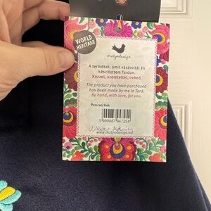 NWT Matyo Designs Handmade Cape Poncho Navy Felt Cowlneck Embriodered One Size
