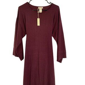 NWT Max Studio Wine Midi Kimono Sweater Dress S Wide Sleeve Belt RT10540