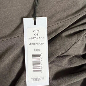 NWT Michael Stars Deep V-Neck Tee Top Oxide Gray One Size Jersey Long Sleeve