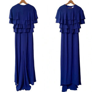 Mikael Aghal gown, royal blue ruffled gown, women’s size 4 formal dress, new with tags evening gown, gala red carpet dress, designer blue pageant gown, black tie wedding guest gown, Mikael Aghal formal crepe dress, floor length ruffle gown, luxury eveningwear dress