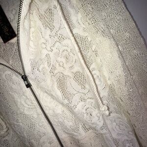 NWT Miss Me Lace Zip Hoodie Cream Ivory Sweater Sheer Knit Hooded Jacket M Boho