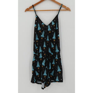 ModCloth Romper Space Rocket Lounge Drawstring Waist Sleepwear Nerdy Size M