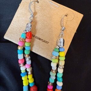 NWT Multicolor Mother of Pearl See Bead Tassel Statement Necklace and Earrings. Brand New! Multicolor large beads lead to mother of pearl statement piece and to multi seed bead tassels. Earrings are multi seed beads. See measurements in photos.