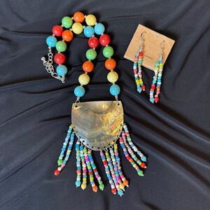 NWT Multicolor Mother of Pearl See Bead Tassel Statement Necklace and Earrings