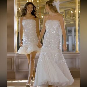 NWT Needle & Thread Regal Rose Gloss Strapless Micro Mini Dress Champagne Size14