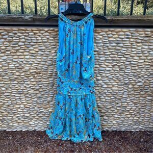 NWT New! A.L.C. 100% Silk Courtney Floral Dress in Blue Grotto Multi. Size 2.