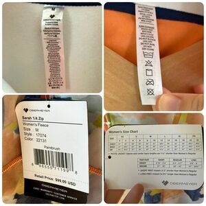 The Sarah 1/4 Zip Pullover by Obermeyer in Paintbrush. The perfect baselayer to block out the cold during your winter-long excursions. 94% Polyester, 6% Elastane. SingleSide Brushed Fleece. Active fit. Flat seam construction. 1/4 zip. Brand new with tags. Measurements in photos.
