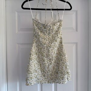 NWT PRINCESS POLLY Acer Yellow Foral Halter Mini Dress 2