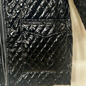 NWT Quilted Patent Leather Rain Coat Jacket With Pockets