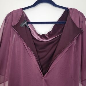 NWT R&M Richards Petite Chiffon-Cape Cowlneck Velvet Gown in Wine Size 4P