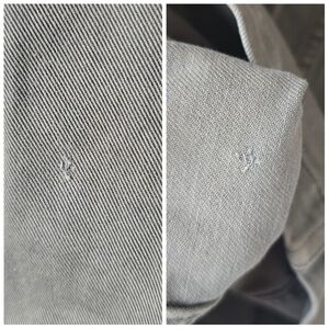 Last 2 pictures show a place on the back where there's a blemish. Not really a hole, more like a pull/scrape. The side by side shows it outside and inside. Price reflects flaw.