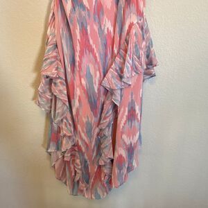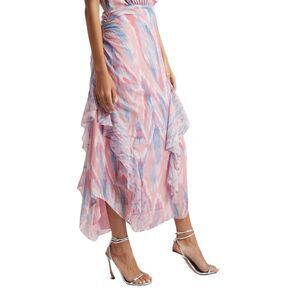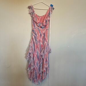 NWT Ramy Brook “Anika” ruffle chiffon maxi dress in pink and blue hues. Size 2