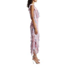 NWT Ramy Brook “Anika” ruffle chiffon maxi dress in pink and blue hues.