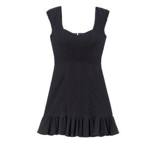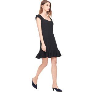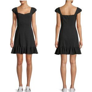 NEW with tags Rebecca black cap sleeve sweetheart neckline dress. The quintessential little black dress is updated for fall in textured, stretch-infused fabric for a polished, shape-flattering fit. Size 4. Ideal for round-the-clock wear, it skims the form with pretty cap sleeves and a dipped square neckline, before kicking out with a short, ruffled hem. Back zip closure.