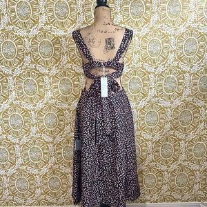 Rebecca Vallance Cha Cha Tie-Back Cutout Pleated Printed Silk-Habotai Midi Dress. Size 6, new with tags. Retail $590.