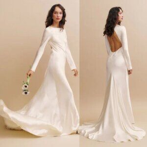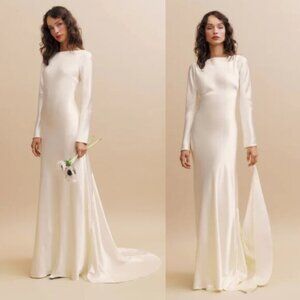 NWT Reformation Adwen Bridal Long Gown Ivory A-line Skirt w/ Train Open Back