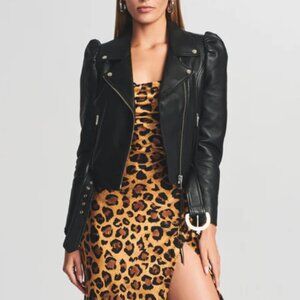 NWT Retrofête Tai Leather Jacket Black/Silver Puff Sleeve XS