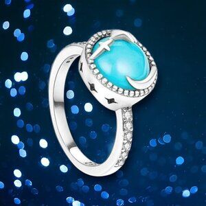 NWT Ring S925 Sterling Silver Stamped Star Moon CZ Turquoise Cabochon Sz. 6