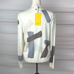 NWT ST. JOHN Lightweight Wool Blend Full Zip Geometric Print Sweater Cardigan