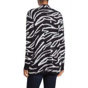 NWT SUSINA Black White Open Front Long Sleeve Zebra Cardigan