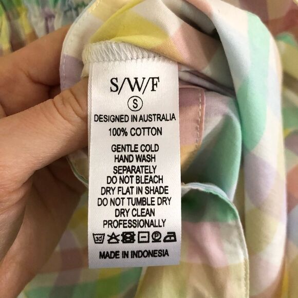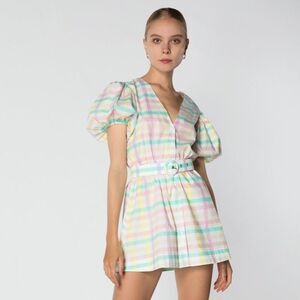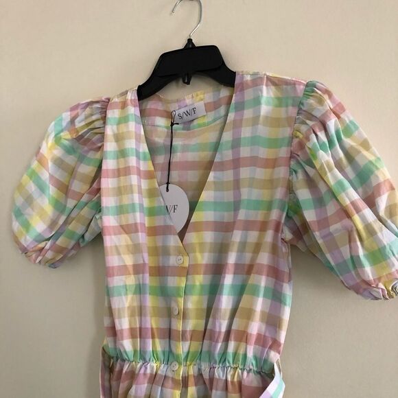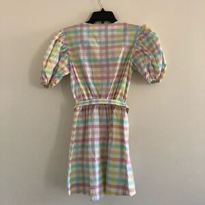 NWT S/W/F Pastel Multicolor Gingham Mini Dress Sz S Puff Sleeve Belted Cotton